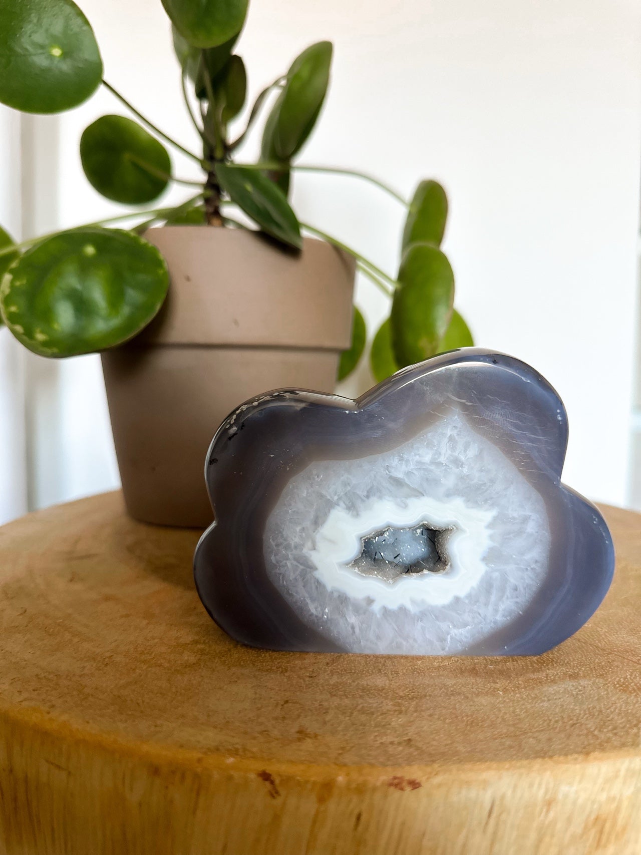 Laat je inspireren door de rustgevende energie van deze unieke agaat wolk en breng een stukje natuurlijke balans in je interieur.