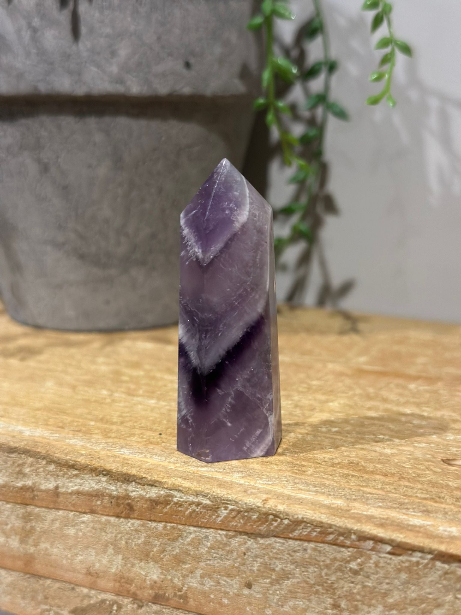 Deze amethist punt straalt een diepe, kalmerende energie uit. Ze nodigt je uit om te vertragen, te zakken in je lichaam en je te verbinden met de stille wijsheid die in jou leeft. Een geliefde steen voor wie rust zoekt, dieper wil voelen en zich wil afstemmen op het hogere.