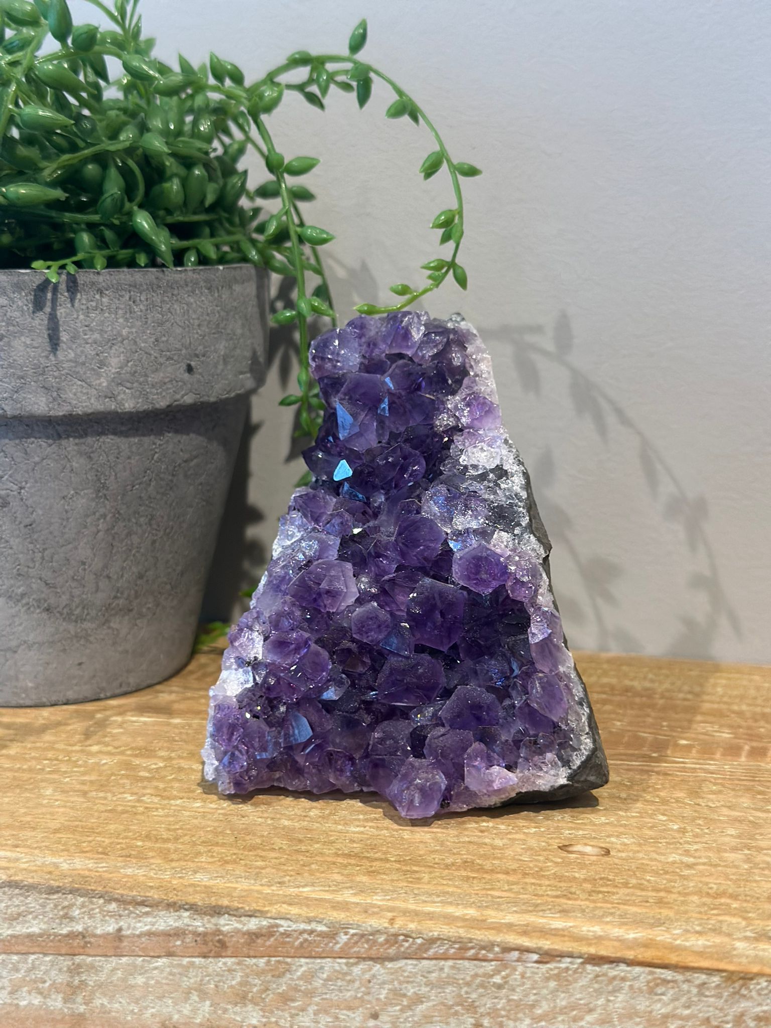 Breng liefdevolle energie in je huis met deze prachtige standvlak Amethist – een krachtig kristal dat symbool staat voor zelfliefde, innerlijke rust en spirituele bescherming. Met haar diepe paarse kleur en natuurlijke uitstraling is dit stuk niet alleen energetisch waardevol, maar ook een schitterende toevoeging aan je interieur.
