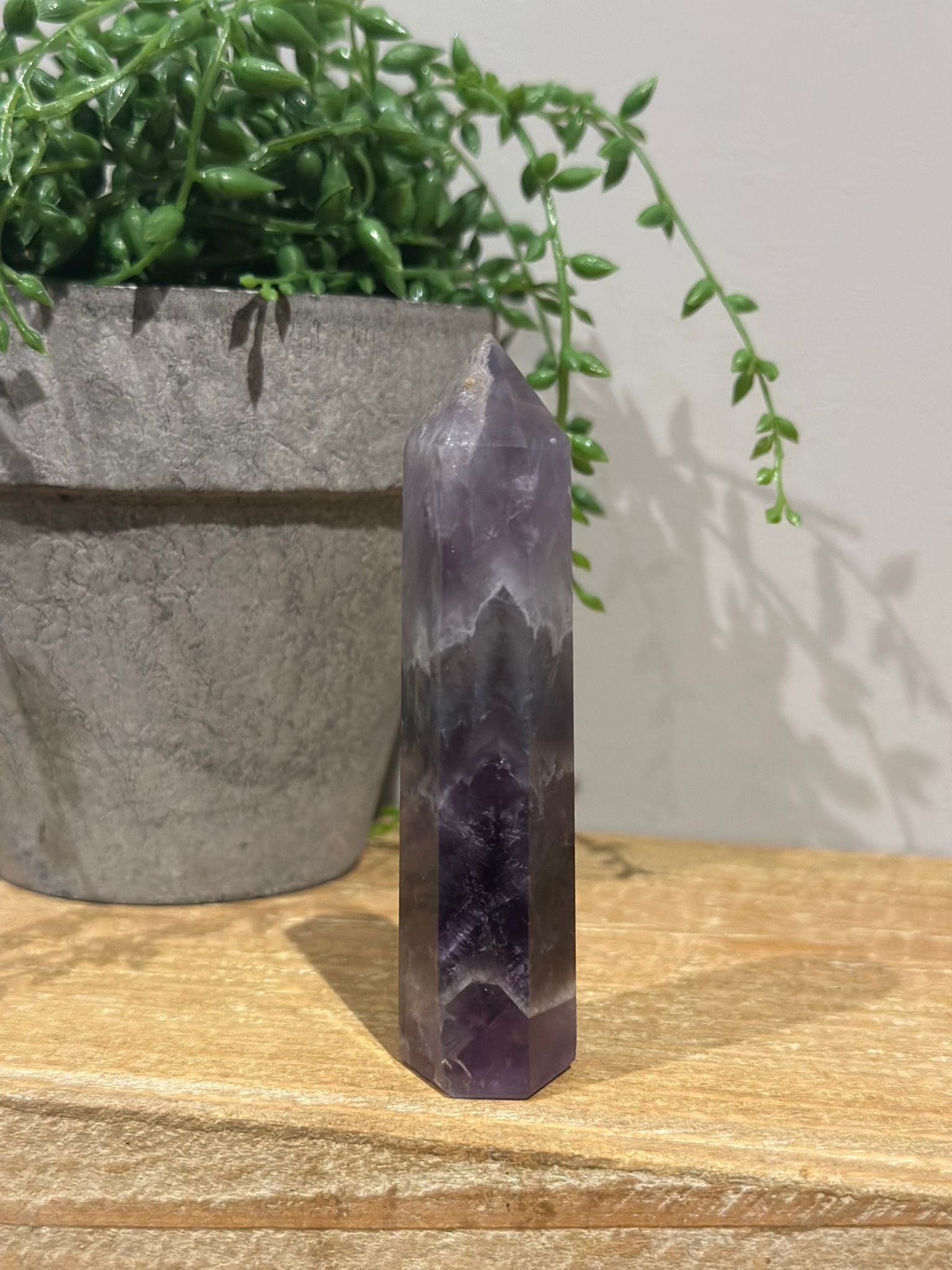 In deze gepolijste puntvorm werkt fluoriet gericht en versterkt. Richt haar naar boven voor helderheid en verbinding met hogere energieën, of naar beneden voor diepe aarding en focus. Een krachtige tool voor meditatie, energetisch werk of simpelweg als rustgevend anker in je ruimte.