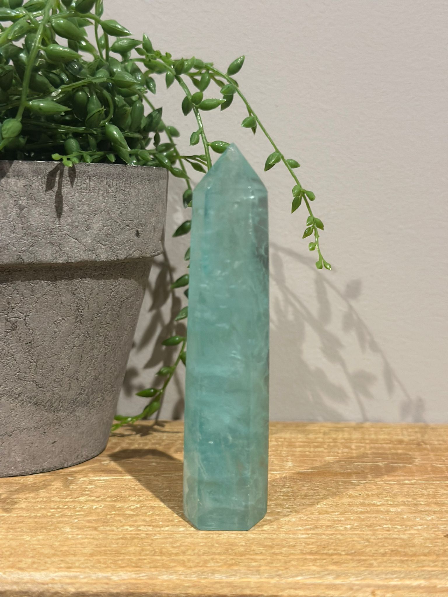 In deze gepolijste puntvorm werkt fluoriet gericht en versterkt. Richt haar naar boven voor helderheid en verbinding met hogere energieën, of naar beneden voor diepe aarding en focus. Een krachtige tool voor meditatie, energetisch werk of simpelweg als rustgevend anker in je ruimte.