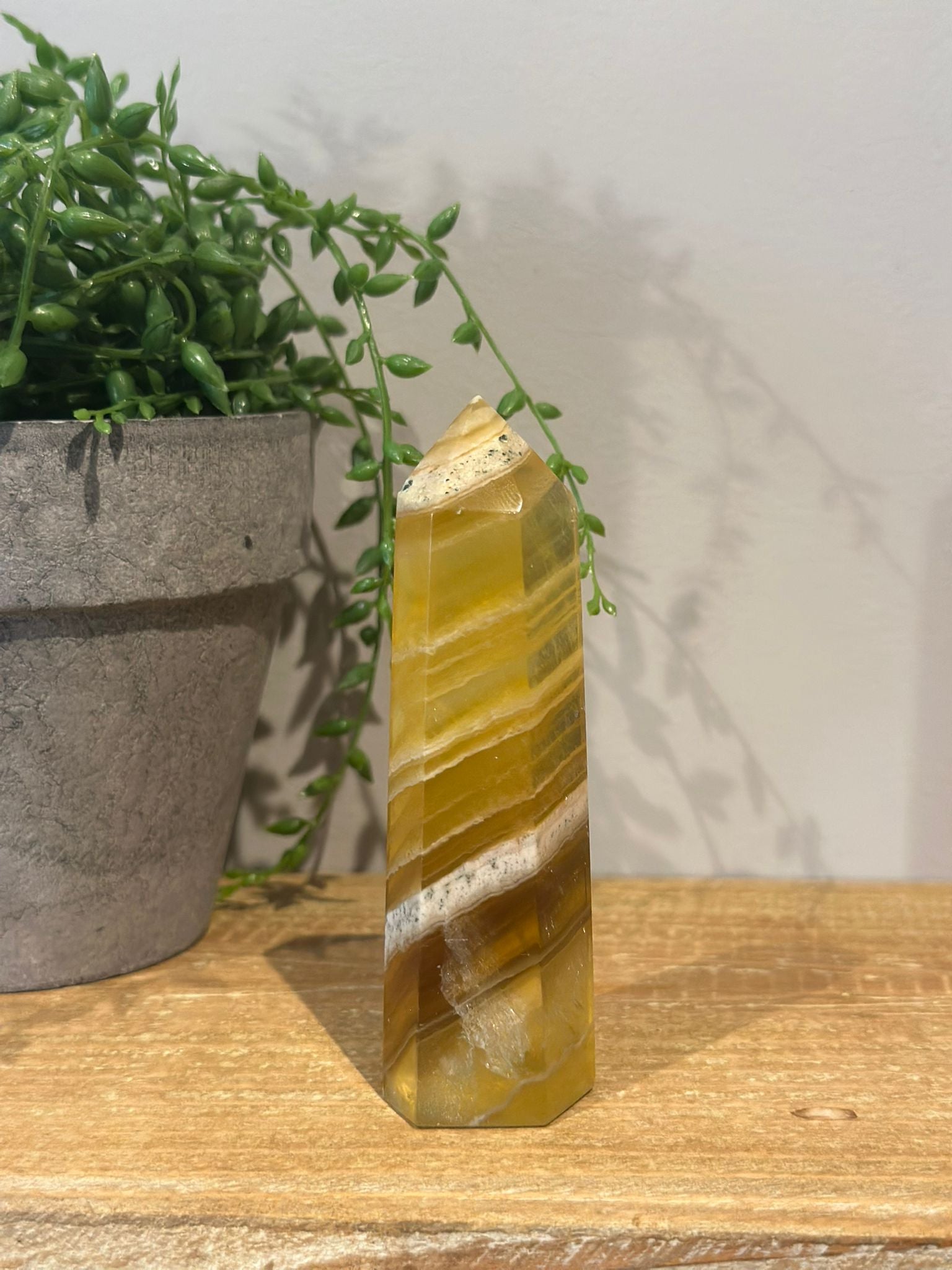 Laat het zonlicht binnenstromen in je energieveld met deze stralende gele fluoriet punt. Deze edelsteen draagt de frequentie van helderheid, optimisme en zachte actie. Ze herinnert je eraan dat het veilig is om je licht te laten schijnen, precies zoals je bent.