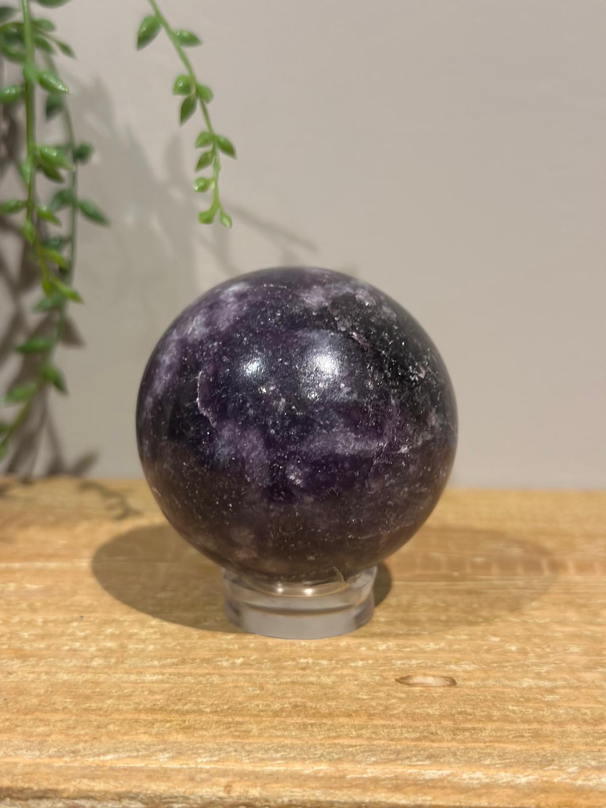 Deze lepidoliet bol draagt de trilling van verzachting. Ze wiegt je zenuwstelsel, kalmeert innerlijke stormen en nodigt je uit om te ademen – diep, langzaam en liefdevol. Een balsem voor je hart op dagen dat alles te veel lijkt, en een zachte bondgenoot voor wie diep voelt.