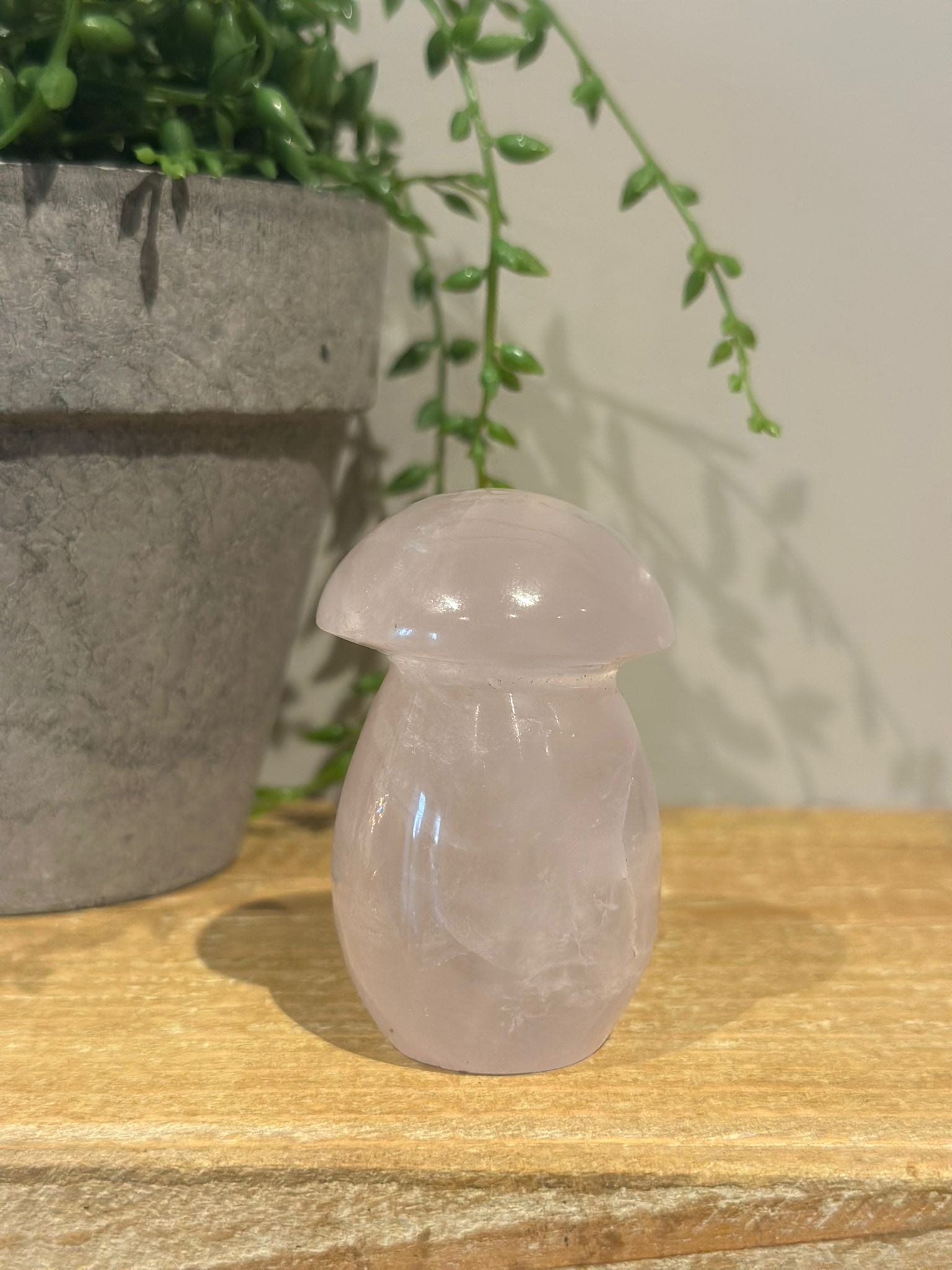 Of je haar nu aan jezelf geeft of aan iemand die je lief is, dit rozenkwarts paddenstoeltje herinnert je aan de kracht van liefde in haar meest eenvoudige vorm.
