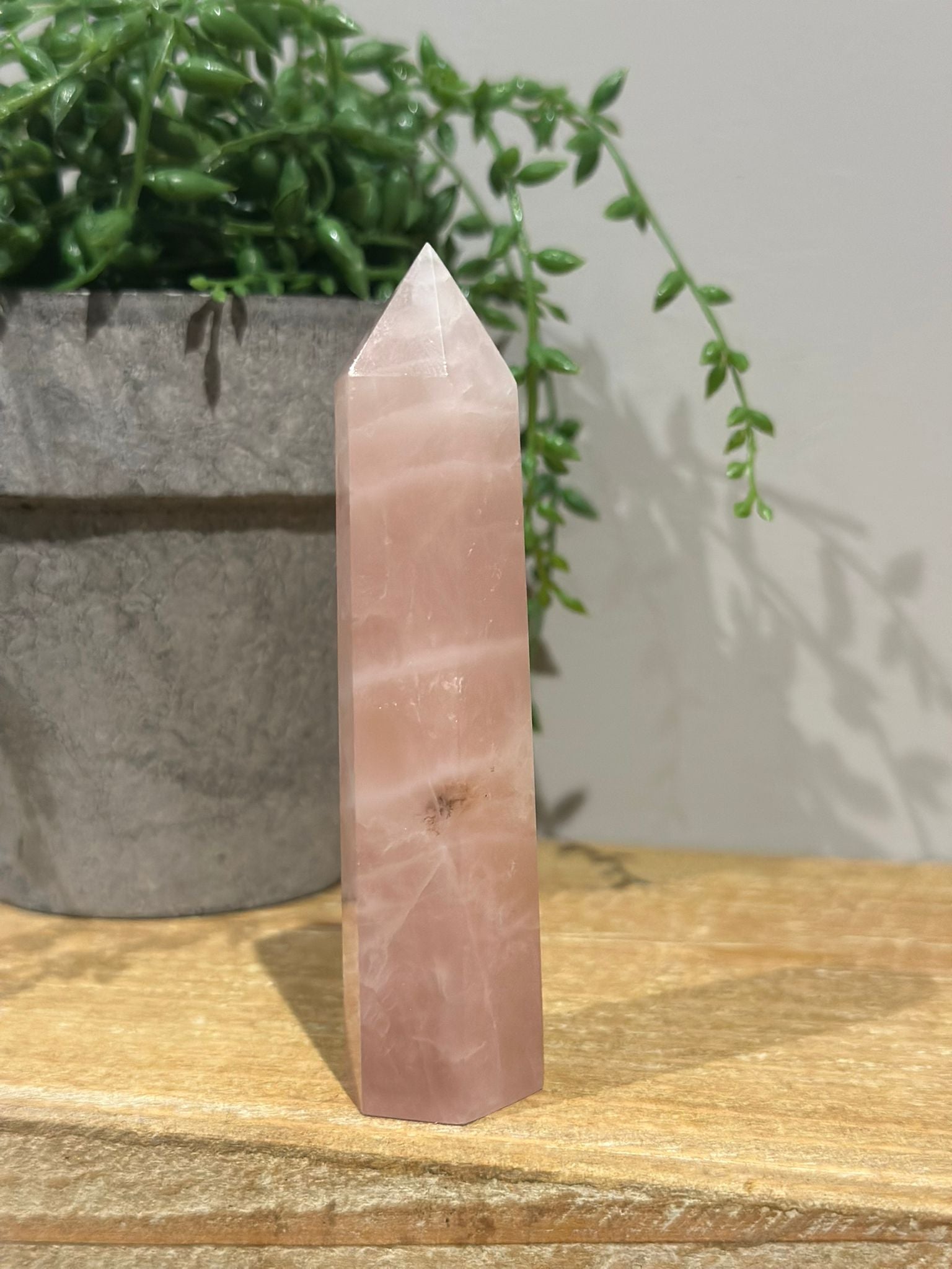 Deze rozenkwarts punt is als een anker van liefdevolle energie. Ze nodigt je uit om je hart te openen, zachtheid toe te laten en jezelf te omarmen – precies zoals je bent. Een steen die je eraan herinnert dat ware kracht begint bij liefde voor jezelf.
