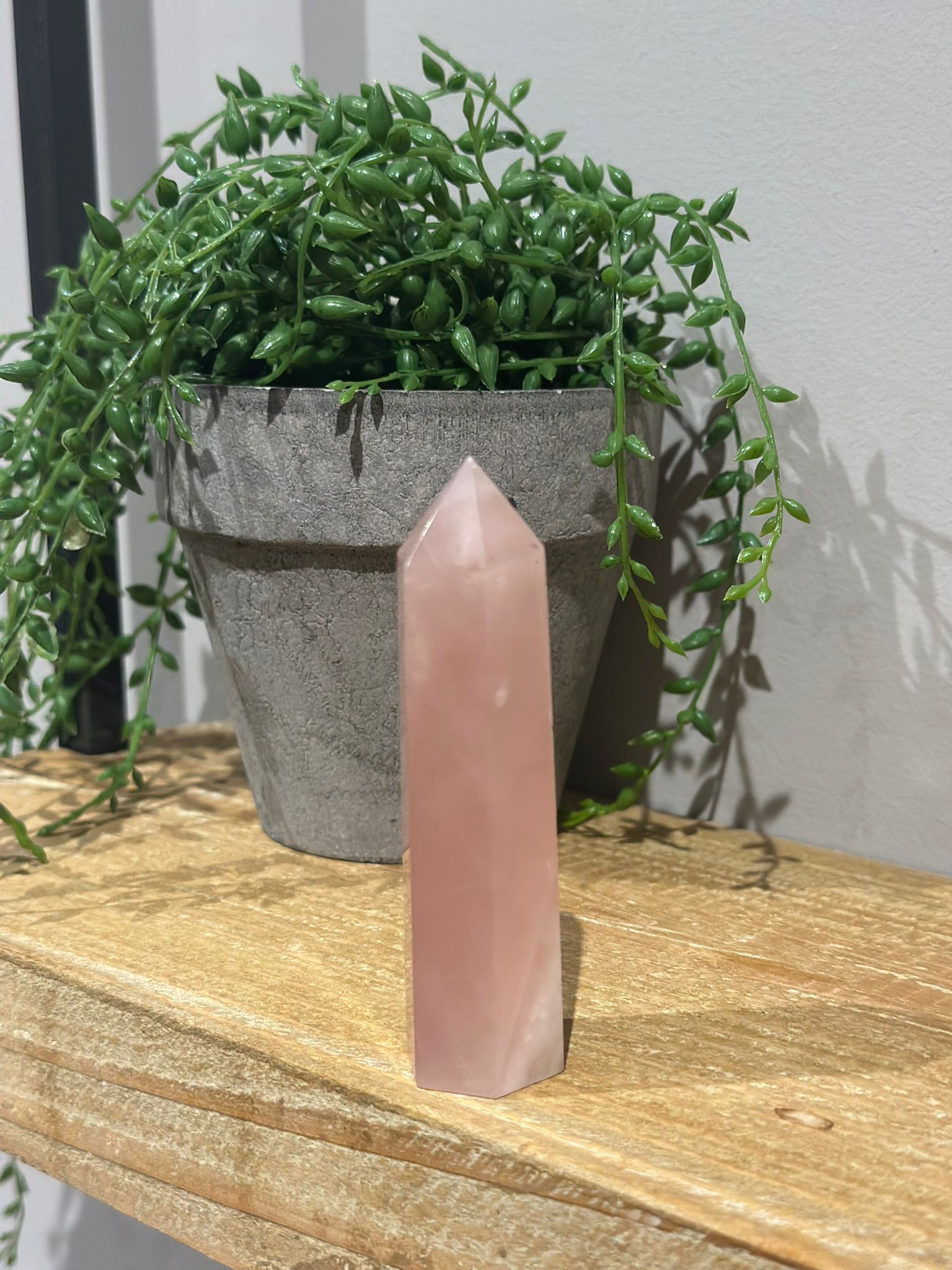 Deze rozenkwarts punt is als een anker van liefdevolle energie. Ze nodigt je uit om je hart te openen, zachtheid toe te laten en jezelf te omarmen – precies zoals je bent. Een steen die je eraan herinnert dat ware kracht begint bij liefde voor jezelf.