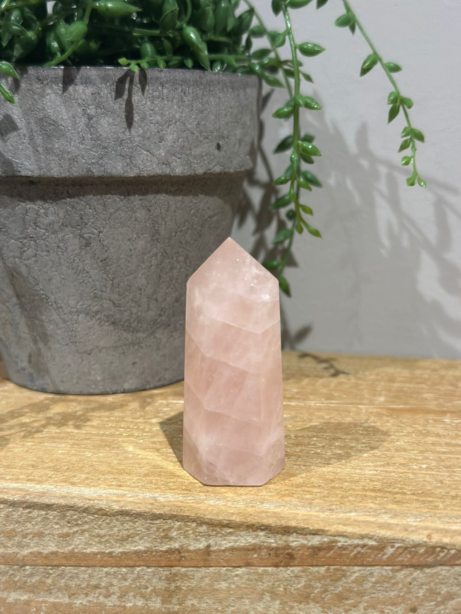 Deze rozenkwarts punt is als een anker van liefdevolle energie. Ze nodigt je uit om je hart te openen, zachtheid toe te laten en jezelf te omarmen – precies zoals je bent. Een steen die je eraan herinnert dat ware kracht begint bij liefde voor jezelf.