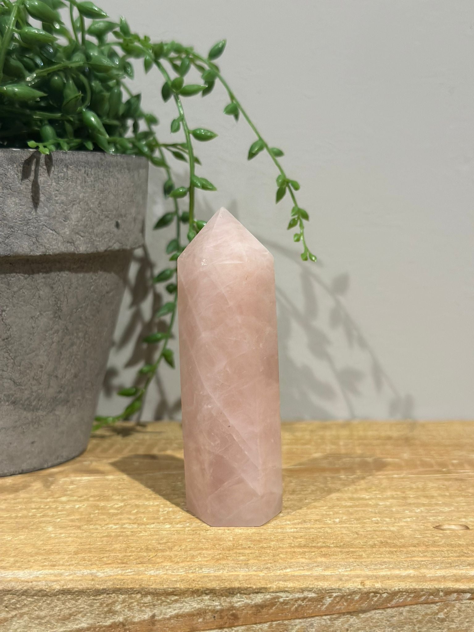 Deze rozenkwarts punt is als een anker van liefdevolle energie. Ze nodigt je uit om je hart te openen, zachtheid toe te laten en jezelf te omarmen – precies zoals je bent. Een steen die je eraan herinnert dat ware kracht begint bij liefde voor jezelf.