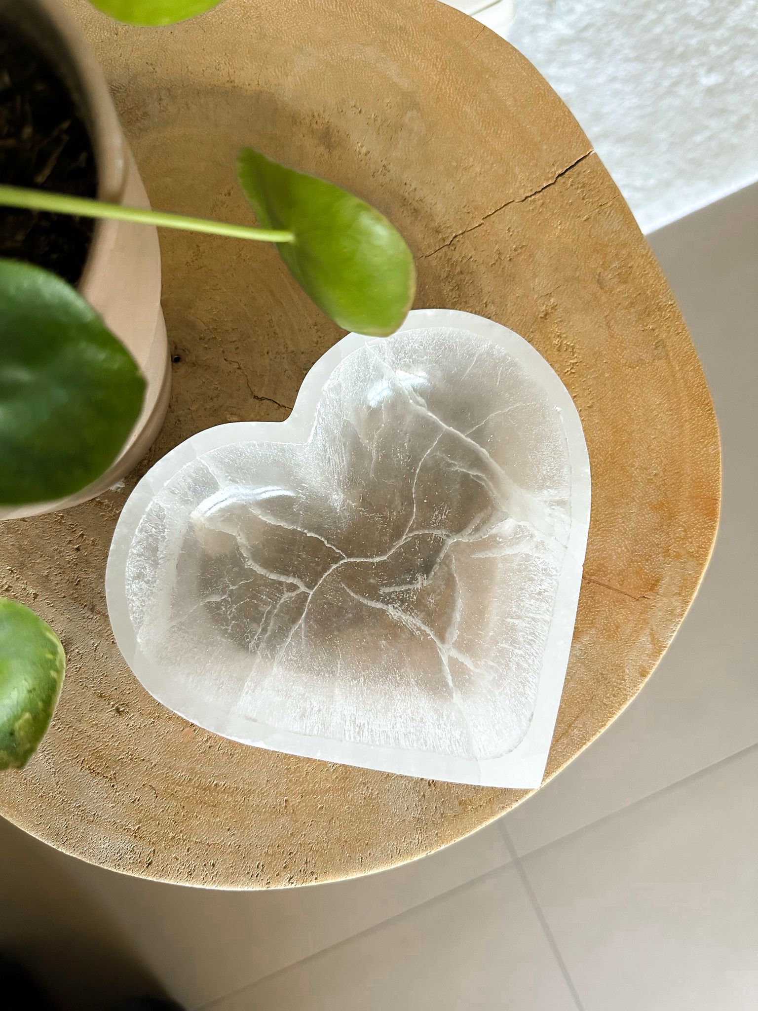 Deze prachtige schaal in de vorm van een hart is gemaakt van seleniet, een steen die bekendstaat om haar hoge, zuiverende energie. Met haar zachte, witte glans en subtiele lichtreflectie straalt deze schaal pure rust uit. De hartvorm maakt haar extra bijzonder: symbool voor liefde, zachtheid en verbinding.