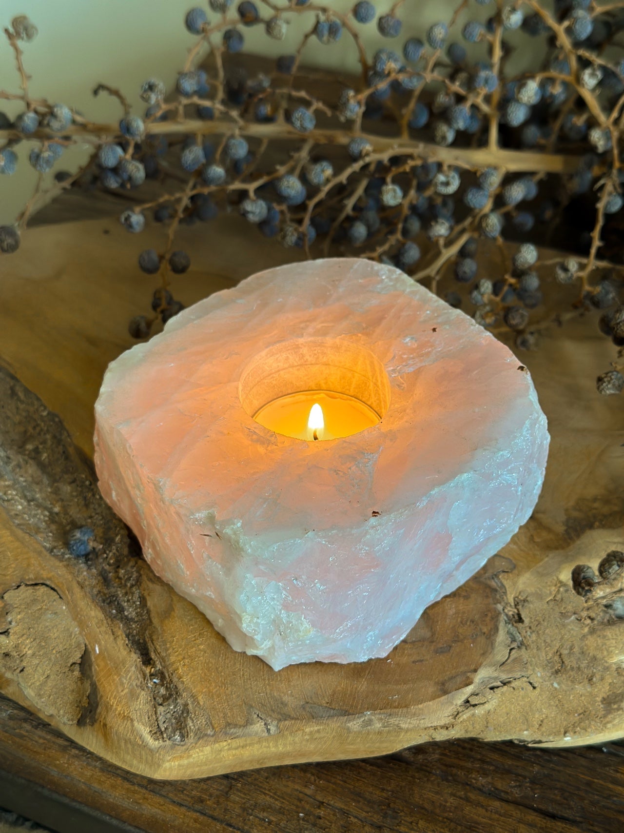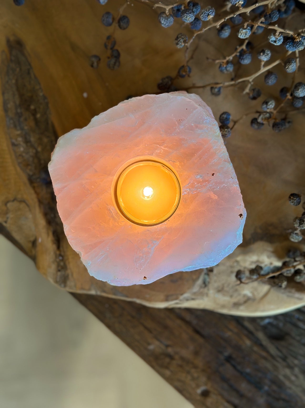 Voeg een vleugje liefdevolle energie toe aan je interieur met deze schitterende rozenkwarts waxinelichthouder.