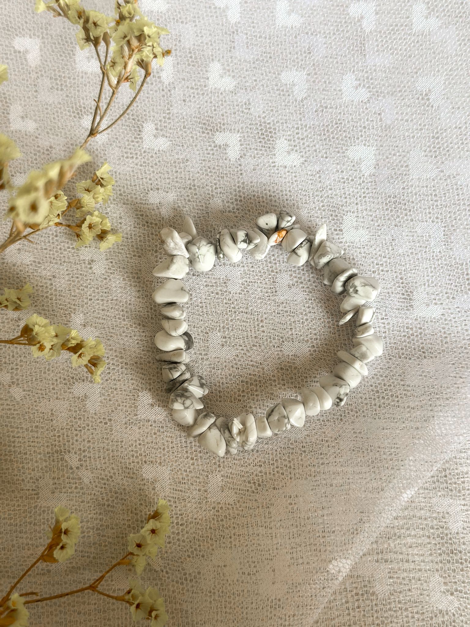 White howlite straalt rust uit en helpt bij het kalmeren van een overactieve geest. Ideaal bij stress, slapeloosheid of als steun bij meditatie.